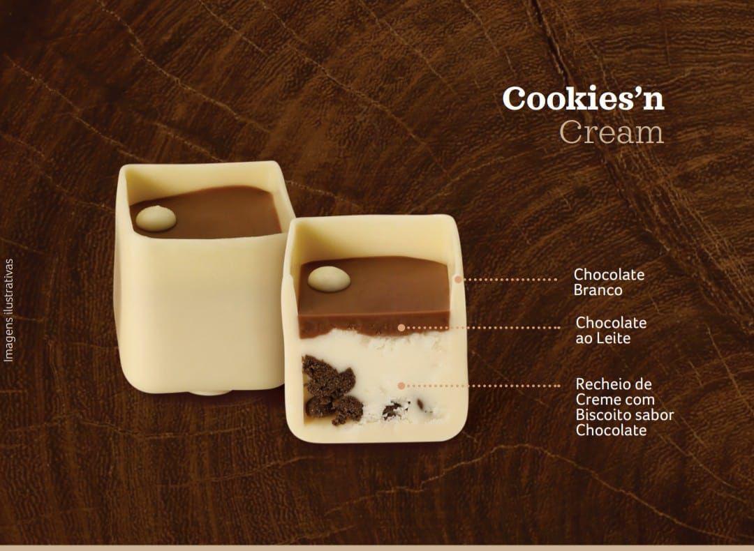 Cubo com Bombons Brownie traz recheio sabor brownie e chocolate ao leite para adoçar seu Natal.